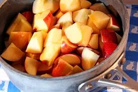 α. Κόβουμε τα μήλα σε μικρά κομμάτια και τα βάζουμε σε μια κατσαρόλα.